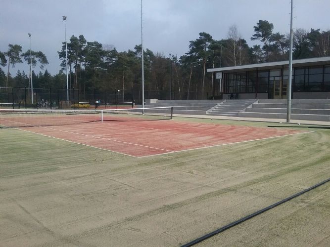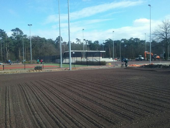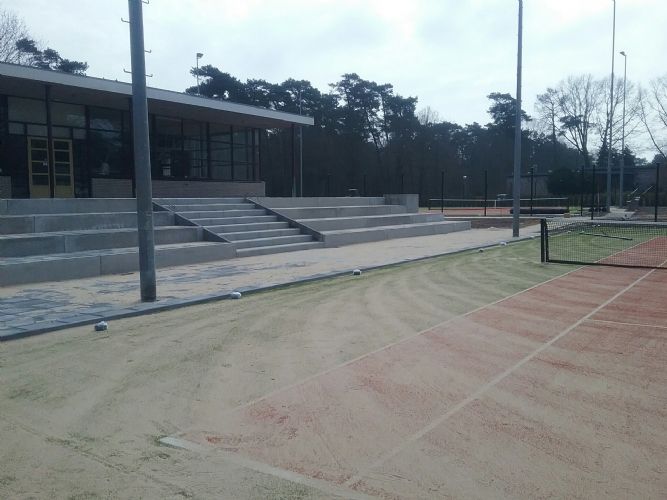 Op dit moment zijn er op het sportpark 20 banen en 3 paviljoens op 2 locaties. Het project bestaat uit de renovatie en (her)inrichting van de tennisaccommodatie van de fusieverenigingen Ginneve/TCV. Hiervoor worden van de bestaande 14 banen 8 banen gerenoveerd (toplaag renovatie) en 2 banen worden vernieuwd alsmede de gehele bovengrondse inrichting van de accommodatie. Alle banen worden voorzien van een toplaag van zandkunstgras. Rondom het te renoveren clubhuis wordt een verhoogd terras met tribune elementen gerealiseerd. De aanleg wordt gefaseerd uitgevoerd zodat de vereniging gedurende uitvoering minimaal de beschikking heeft over 4 bespeelbare banen. Binnen de plangrenzen was ruimte gereserveerd voor de toekomstige aanleg van een extra baanblok. Na aanbesteding heeft de fusievereniging een aanvullende opdracht verstrekt aan de aannemer voor de aanleg van 2 extra banen. De aanleg van deze 2 banen wordt gecombineerd met de realisatie van het project. Aanneemsom: 295.700,00 euro Opdrachtgever: Gemeente Valkenswaard Postbus 10 100 5550 GA Valkenswaard Roland de Ruig Roland.de.Ruig@valkenswaard.nl Bestek/uitvoeringsbegeleiding: KYBYS Bosscheweg 107-108 5282 WV Boxtel Cor Smulders cor.smulders@kybys.nl Aannemer: Antea Realisatie B.V. Beneluxweg 125 4904 SJ Oosterhout Peter van Hooydonk Peter.vanHooydonk@Anteagroup.com