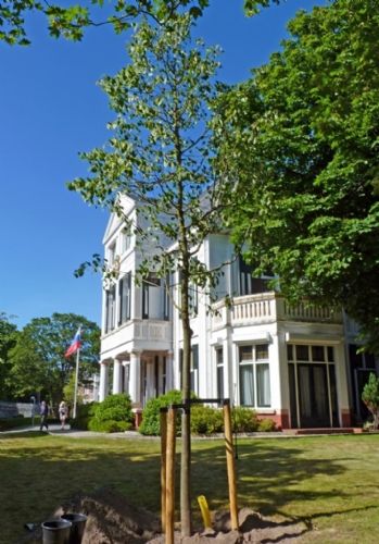 Zeshonderd kinderen en genodigden, waaronder zestig ambassadeurs uit vele landen, verzamelden zich op 9 juni in de tuinen van de Russische ambassade in Den Haag om twee Kroningsbomen van Boomkwekerij Ebben te planten.
