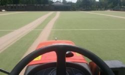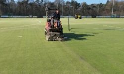 De bekende problemen met een semi-waterveld: het is glad en vuil in nat weer en dus ontstaan er algen.