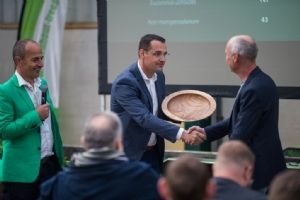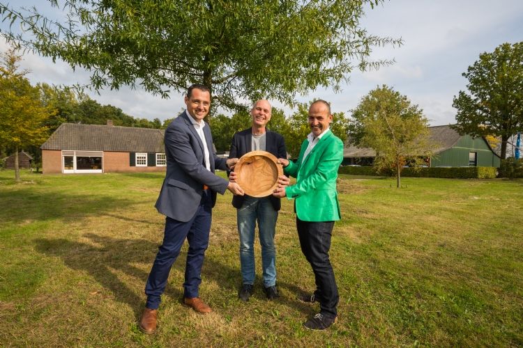 Hans Kaljee nam tijdens de Boom Innovatie Dag, 13 oktober bij boomkwekerij Udenhout, namens Canoot de pitch op zich. Hij haalde de bijzondere bloeiwijze aan en wees op de toekomstbestendigheid van deze iep, die eerder van nattigheid in plaats van droogte houdt. Kaljee nam de schaal voor de winnende inspiratieboom in ontvangst uit handen van gastheer Martien Mantje en hoofdredacteur Hein van Iersel.