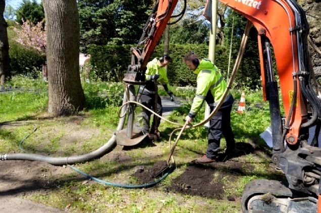 Dat gebeurde door een unieke samenwerking van een aantal partijen: Zoontjens Boomprojecten, De Meerlanden, Xivac en Innogreen. De techniek in een notendop: met een unit, waarvoor een speciale zuigapplicatie is gemaakt aan de kraan, werden zo'n 30 tot 40 gaten gezogen in de bodem rondom elke boom. En dit tot zo'n 60 à 70 centimeter diep. Middels kleine leidingen werd lucht naar beneden geblazen, waardoor de grond los kwam en vervolgens werd opgezogen. De bodem werd vervolgens opgewaardeerd met een product afkomstig uit eigen regio.