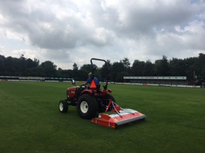 VV Peursum is sinds twee weken de trotse eigenaar van een Trimax Striker 190, getrokken door een Shibaura ST330 HST. Hun huidige kooimaaier was aan vervanging toe en de beheerders waren op zoek naar een getrokken maaier, zodat de trekker meervoudig ingezet kan worden op de verschillende natuur- en kunstgrasvelden.
