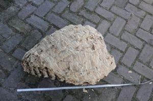 Op de foto: het nest van de Europese hoornaar is al groot, maar een nest van de Aziatische hoornaar zou dat formaat nog overstijgen.