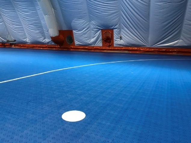 Afgelopen weekend is er bij MHC Leusden hard gewerkt om een zaalhockey Airdome op de eigen accommodatie te realiseren. De blaashal ligt over een bestaand kunstgrasveld gescheiden door een speciale ondervloer waarop een indoor modulaire vloer is gelegd.