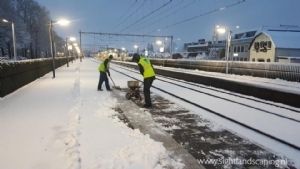 Sneeuw Afgelopen weekend met code oranje en lokaal tot soms wel 15 centimeter sneeuwval konden ze bij SIGHT vol aan de slag op de stations. Ook vandaag is het weer een winterse dag. De voorspellingen beloven ons 10 á 15 centimeter sneeuw met temperaturen rond het vriespunt. Het strooien en sneeuwvrij houden van de perrons, trappen, fietsenstallingen en hellingbanen van alle 410 stations zal vandaag dan ook nog volop in gang zijn.