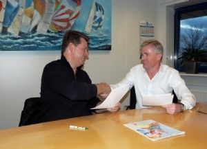 Op de foto: Gerko Roekevisch (l, Almat) en Hans Gilbers (Waterkracht) bij de officiële contractondertekening