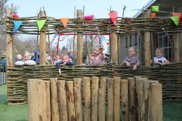 Een jaar geleden startten alle voorbereidingen voor de realisatie van het nieuwe schoolplein. De realisatie van het plein is een mooie samenwerking gebleken tussen leerlingen, ouders, leerkrachten en bedrijven, die allemaal een bijdrage leverden. Volgens Snoek Hoveniers is de inbreng van betrokkenen op allerlei manieren herkenbaar in het eindresultaat. 'De wens voor natuurlijk spelen, sporten en educatie is duidelijk in het ontwerp meegenomen. Zo is er een educatietuin met buitenlokaal aangelegd, waar kinderen onder andere leren waar eten vandaan komt en hoe het groeit. Daarnaast is er ruimte gecreëerd om te voetballen.'
