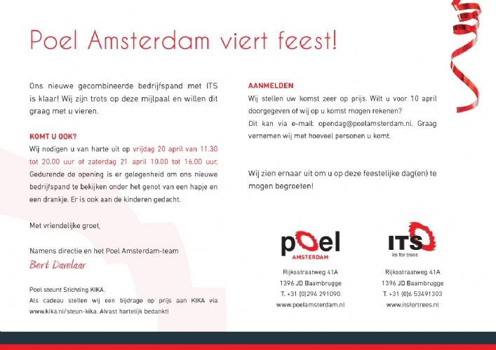 Op 20 en 21 april organiseren Poel Amsterdam en ITS een open dag om de opening van het gecombineerde bedrijfspand in Baambrugge te vieren.