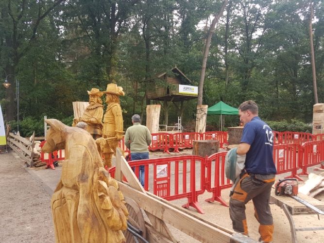 Nachtwacht van hout Vooral in de Verenigde Staten, Engeland en Duitsland is woodcarving een populaire kunstvorm. Maar ook in Nederland wint het aan bekendheid. De deelnemers hebben een arsenaal aan kettingzagen bij zich met zaagbladen variërend van 20 centimeter tot wel anderhalve meter. Deze 'lompe kettingzagen' veranderen in de handen van de kettingzaagartiesten in precisie-instrumenten. Ook Sander Boom, meervoudig Nederlands kampioen zal zijn kunsten vertonen. Hij werkt met Dolmar-benzinekettingzagen en werkt de sculpturen af met een Makita-accuzaag. Aspen, producent van olieproducten en schone alkylaatbenzine, is daarbij partner.