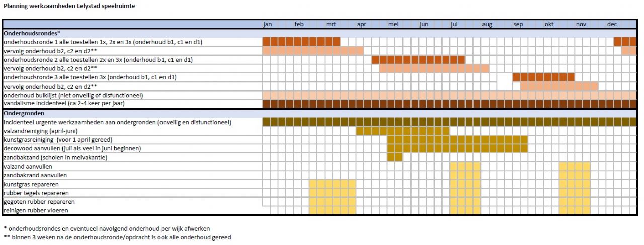 Figuur 2: planning van de werkzaamheden Lelystad speelruimte (klik op de afbeelding voor een vergroting)