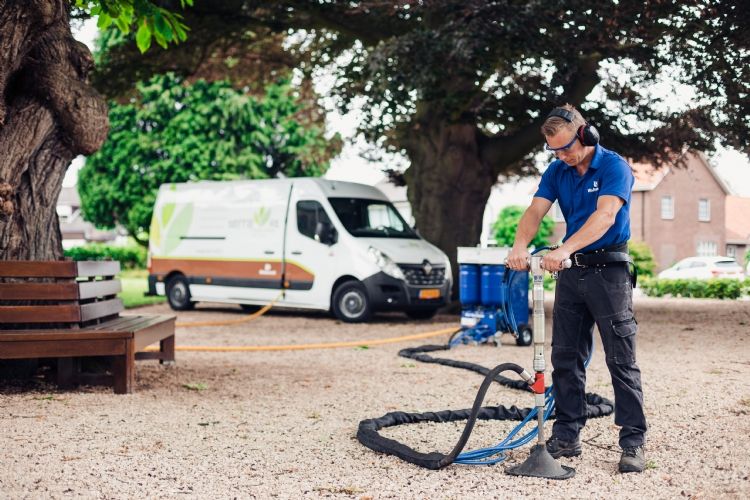 Maar al te vaak worden er bomen gekapt in plaats van te kijken of ze nog te redden zijn. Een betere optie is om te kijken waarom die boom het slecht doet. Vaak wordt een slechte conditie van de boom veroorzaakt door een gebrek aan voedingsstoffen in de bodem of een slechte opname ervan. Ook een verdichte groeiplaats is een veel voorkomend probleem. Met slanglengten tot honderd meter bereiken we alle plaatsen. En dankzij de compacte werkunit is deze manier van groeiplaatsverbetering nu ook mogelijk bij grotere bomenbestanden in stedelijk gebied.