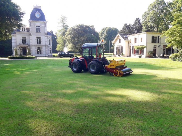 Aanhoudende droogte veroorzaakt veel bezorgdheid bij gras- en gazoneigenaren, maar zodra de eerste druppels vallen, kunnen de Vredo-machines volop aan de slag om de grasmatten weer groen te laten kleuren. Zo ook bij Frans Schimmel Groen en Grondwerk uit Vaassen, sinds 1997 actief als zelfstandig ondernemer en vanaf 2001 in het bezit van Vredo-machines. De allereerste machine van Frans Schimmel was een Vredo Agri 2100. Tegenwoordig bezit hij drie Vredo-doorzaaiers, in alle werkbreedtes. Het gaat om een Vredo Sport (2 m werkbreedte, 5 cm rijafstand, getrokken), een Vredo Compact (1,4 m werkbreedte, 7,5 cm zaairijafstand, driepunts) en een Vredo Super compact (1,2 m werkbreedte, 3,5 cm rijafstand), waarmee hij in een straal van 30 kilometer rondom Vaassen grote werken, maar ook achtertuinen kan doorzaaien.
