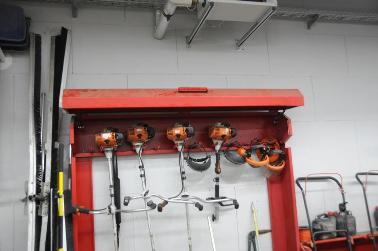 De werking van de strimmer vault is kinderlijk eenvoudig. Je hangt je machines in de kast. Vervolgens klap je het deksel naar beneden en sluit deze af. Wellicht is dit handel voor een ondernemende tuin- en parkdealer? Hier moet in Nederland ook business voor zijn!