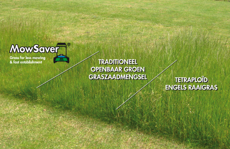Optisch verschilt Mow Saver nauwelijks van het gras uit traditionele mengsels. 'Het is een fijnbladig grasmengsel, dat eruitziet en voelt als elke andere grassoort', stelt Floor Drissen. Omdat het gras trager groeit, kan het per jaar wel 40 procent minder bladmassa hebben en 30 procent minder lengtegroei dan standaard grasmengsels. Drissen durft wel te stellen dat de maaifrequentie 35 procent lager ligt.