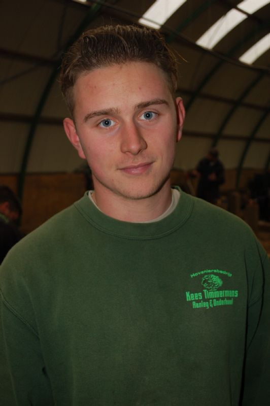 Demy Temmermans (20) werkt bij het hoveniersbedrijf van zijn vader. Hij is als eerste klaar met de opdrachten in de loods. 'Ik werk al vanaf mijn twaalfde bij hem in mijn vakanties en in de weekenden. Ik heb de opleiding Aankomend hovenier al gedaan bij Helicon. De opleiding Vakbekwaam hovenier is weer wat moeilijker, uitdagender. Vooral op het gebied van plantenkennis wordt nu meer verwacht. Ik ben voorstander van een grote plantenkennis. Dat onderscheidt in mijn ogen een hovenier van A-kwaliteit van een hovenier van B-kwaliteit. Je moet als hovenier weten waar je over praat en geen onzin verkopen.'