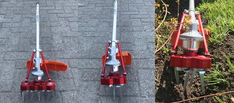De Powerschoffel 1 is een in Duitsland ontwikkelde en gepatenteerde machine die gebruikmaakt van een betrouwbare 4-takt benzinemotor voorzien van een reductiekast. Gebruikers hoeven met de Powerschoffel 1 niet meer te knielen, of te bukken bij het bestrijden van onkruid tussen de planten of op bestrating. De Powerschoffel 1 kan uitgerust worden met een drietandige schoffel waarmee u eenvoudig tussen u planten kan schoffelen, de metalen ring om de schoffel beschermt de begroeiing in de tuin waarin u werkt. Naast de drietandige schoffel kan de Powerschoffel 1 ook uitgerust worden met een metalen borstel waarmee eenvoudig onkruid op verharding verwijderd kan worden. De reductiekast op de Powerschoffel 1 zorgt ervoor dat het hulpstuk uiteindelijk nog met 600 toeren per minuut ronddraait. Dit heeft als voordeel dat de machine krachtig is, maar toch gemakkelijk te hanteren en te manoeuvreren is. Bosmaaiers voorzien van metalen borstels zijn niet CE toegelaten en leveren vaak schade op door de snel draaiende bosmaaier kop. Door het lage toerental op het hulpstuk van de Powerschoffel 1 kunnen gebruikers probleemloos borstelen met een metalen borstel. Door het lage toerental is de kans op schade als gevolg van wegvliegende steentjes, takjes of andere zaken is minimaal. De Powerschoffel 1 is CE toegelaten en DLG goedgekeurd.Poel Bosbouwartikelen B.V is de Nederlandse importeur voor deze machine. De machine is vanaf heden verkrijgbaar bij onze vestigingen.