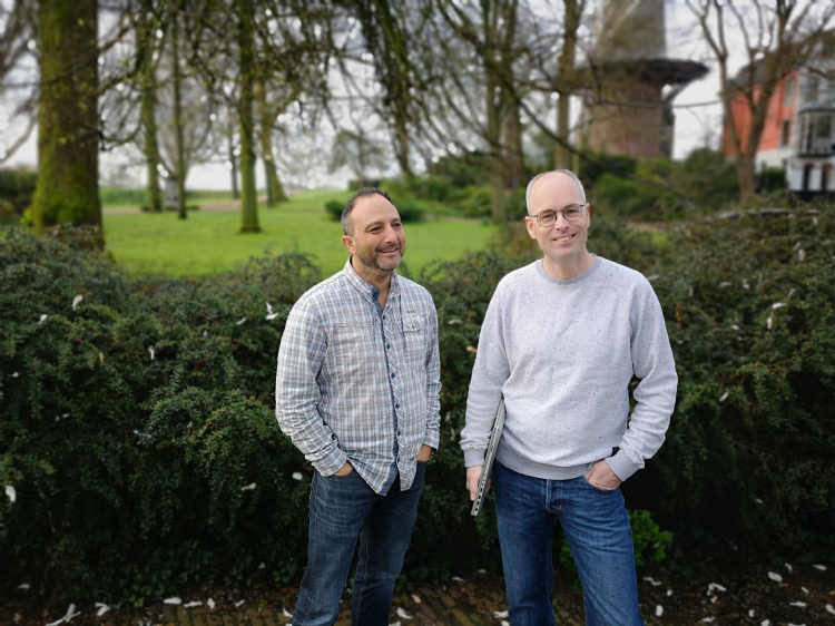 | | Links Rob van den Hoogenband, Timin' Systems-partner, en Robbert de Boer |
