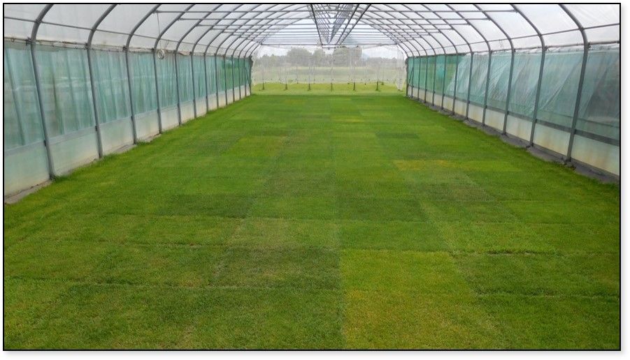 Rietzwenk: geen moeite met droogte en hitteRietzwenk is van alle West-Europese grassen een van de meest droogte- en hittetolerante soorten. Intensief onderzoek in Italië in zogenaamde rainout shelters laat dit overduidelijk zien (zie foto's). In deze rainout shelters ervaren de planten extreme stress door langdurige droogte en hitte. Slechts enkele planten overleven een dergelijk regime van enkele weken droogte en hitte; een nog kleiner deel herstelt na dergelijke stress. Dit intensieve onderzoek leidde tot de ontwikkeling van een mengsel dat bijna 70 procent minder water nodig heeft dan een standaard-gazonmengsel: het mengsel Water Saver. Water Saver is al jaren op de markt, maar de noodzaak om het te gebruiken was buiten Zuid- en Oost-Europa nog niet groot. Het bestaat uit speciaal geselecteerde rietzwenken, veldbeemden en Engels-raaigrassen die uitblinken in droogtetolerantie én in herstel na droogte en hitte.Rainout shelter voor en na een stressperiode. Extreme stress leidt tot aantoonbare verschillen. Bron: Landlab Research Institute, Italië Veldbeemden: wispelturigOok binnen de veldbeemden is de variatie in droogte- en hittetolerantie enorm. Als ze het niet redden, komt dat vaak door een funeste onderliggende ziekte. Rassen die hoog scoren op de Nederlandse Grasgidslijsten, kunnen genadeloos door de mand vallen in warme en droge gebieden, zoals in Zuid-Europa. Rassen die in Zuid- en Oost-Europa uitmuntend scoren, hebben niet per definitie een hoge score op de Nederlandse lijsten. Gelukkig zijn er rassen die het in beide zones goed doen.Engels raaigras verrastEr werd altijd gezegd dat Engels raaigras niet geschikt zou zijn voor warme zomers. Daarom was het herstellend vermogen van Engels raaigras na de extreme zomer van 2018 voor velen een eyeopener. Op veel plekken kwam Engels raaigras als eerste terug. Het nadeel van normaal Engels raaigras is de polvormendheid. Het resultaat: een dorre vlakte met her en der een polletje groen gras en een mat die niet lekker dichtgroeit.Ook binnen de Engels raaigrassen is de diversiteit enorm. De oude generatie Engels-raaigrassen scoort vaak beduidend slechter voor droogte- en hittetolerantie dan de nieuwe generatie. Onderzoek in Italië en Frankrijk laat zien dat uitlopervormend Engels raaigras (het zogenaamde RPR- gras) beduidend beter is bij droogte en hitte én bij het herstel van droogte- en hitteschade. De uitlopervormendheid van RPR zorgt er tevens voor dat de hiervoor beschreven polvorming verleden tijd is. De plant kan zelf vanuit de moederplant nieuwe uitlopers vormen, die kale plekken kunnen opvullen. De unieke mengsels met RPR herstellen dus niet alleen als snelste bij droogteschade, maar zorgen er ook voor dat er aanzienlijk minder schade optreedt. Voorkomen of genezen?Dankzij intensief onderzoek kunnen goed onderbouwde oplossingen worden gecreëerd om droogteschade zo snel mogelijk te herstellen én om droogteschade zoveel mogelijk voor te blijven.Voor gazons biedt Water Saver de beste preventieve oplossing. Water Saver leent zich minder goed voor doorzaai van een bestaande grasmat. In dat geval biedt Bar Power RPR de beste oplossing, op basis van uitlopervormend Engels raaigras. Bar Power RPR kan in elke grasmat worden doorgezaaid en is zeer aan te bevelen voor nieuwe inzaai. Met een bewuste keuze voor grasmengsels valt veel te winnen. Curatief gezien kan schade op de meest efficiënte wijze worden hersteld. Preventief gezien kan veel schade worden voorkomen. Kies daarom bewust voor goede oplossingen die onderbouwd zijn door onafhankelijk onderzoek. De auteur, Olaf Bos, is international productmanager Turf bij Barenbrug.