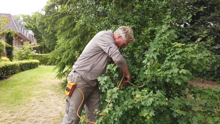Inmiddels is Pellenc niet meer de enige aanbieder. Maar een Pellenc Cultivion tegenkomen in het vrije veld is nog steeds bijzonder. Bij een interview in Nijmegen kwam Laniël Beyé van Beyé Hoveniers ineens met een Pellenc Cultivion op de proppen. ‘Een fantastisch apparaat, maar wel wat duur. Ik gebruik deze machine op plekken waar heel veel onkruid staat. Voor het wieden tussen vaste planten is hij niet zo handig. Je moet dan schoffels gaan wisselen en dat kost behoorlijk wat tijd’.