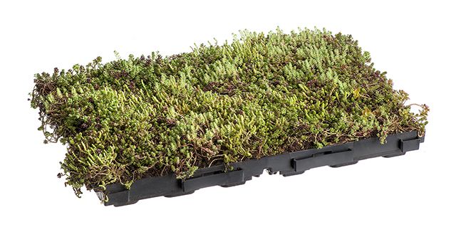 Onkruidvrij dak Greenmakers levert deze Readyroof groendak cassette uit met een bedekkingsgraad van 95 procent. De cassette is vrijwel onkruidvrij. Readyroof van Greenmakers heeft een buffercapaciteit van 30 liter/m² en heeft hierdoor een positieve bijdrage aan waterretentie.