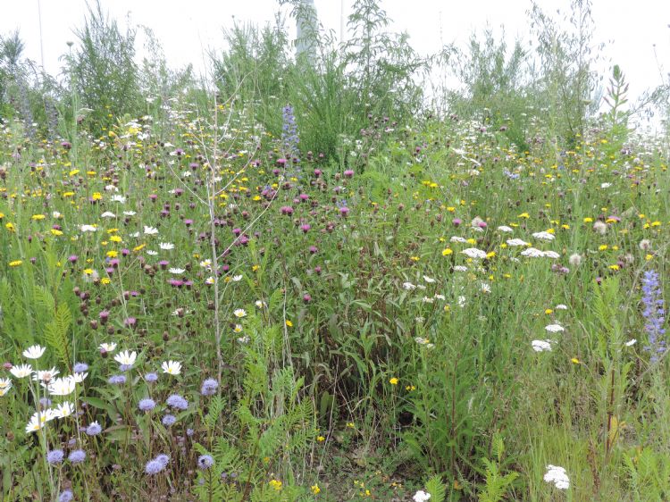 De beplanting op de rotonde bestaat uit verschillende lagen. Zo is er een kruiden- en bollenlaag aangebracht met eenjarige, tweejarige en vaste planten. Er is een heesterlaag met bladverliezende en groenblijvende heesters. Deze zorgen voor bloemen, herfstkleur en het winterbeeld. De bomenlaag is nog volop in ontwikkeling. De bomen die in eerste instantie zijn aangeplant, hebben de afgelopen twee zomers niet overleefd. In het najaar worden ze vervangen door meer droogteresistente, maar toch insectvriendelijke bomen: Koelreuteria en Tetradium. De diversiteit aan insecten is al groot. Bij een eerste ruwe inventarisatie werden meer dan 200 soorten geteld. Dat is te danken aan de strategie achter de gekozen beplanting. Er is namelijk altijd iets bloeiends aanwezig op de rotonde; de gekozen planten trekken vlinders en bijen en de planten zijn zoveel mogelijk droogteresistent. Na verloop van tijd worden de auto's in de natuur opgenomen. De cultuur wordt daardoor steeds minder aanwezig en de natuur des te meer.
