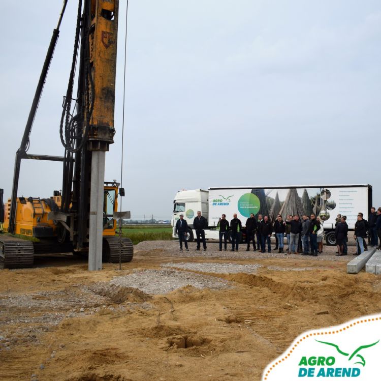 In het bijzijn van directie en medewerkers is symbolisch de eerste paal geslagen. Als alles volgens planning verloopt, zal agro de Arend medio zomer 2020 het nieuwe pand betrekken.