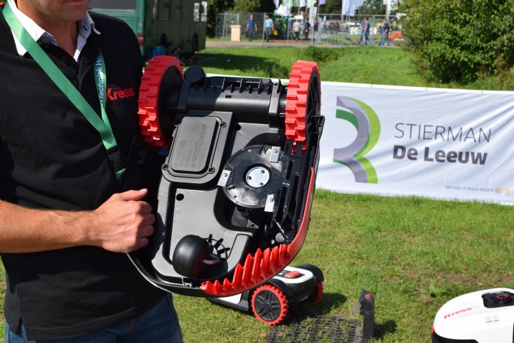 Bij de stand van Stierman de Leeuw waren maar liefst vijf nieuwe Duitse robotmaaiers te bewonderen met Italiaans design: Robotik Kress. Ter achtergrondinformatie: Kress is een oude Duitse merknaam van kwaliteitsgereedschappen voor de echte vakman. Deze naam is enkele jaren geleden uit het faillissement opgekocht door een wereldwijde tuin- en parkmachine fabrikant, Positec. Terug naar het heden, Stierman de Leeuw maakte op de GTH bekend dat zij de nieuwe importeur zijn van de Kress-robotmaaiers. Volgens Jurgen Albers, directeur bij Stierman de Leeuw is het grote voordeel van de Kress-maaiers dat de messen niet in het midden zitten. Dit maakt dat de Kress Robotik strakker langs randen op kan maaien. Daarnaast maait de robot volgens Albers efficiënter dan andere robotmaaiers omdat hij niet kriskras maait, maar in patronen met een efficiëntere manier van draaien.