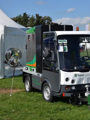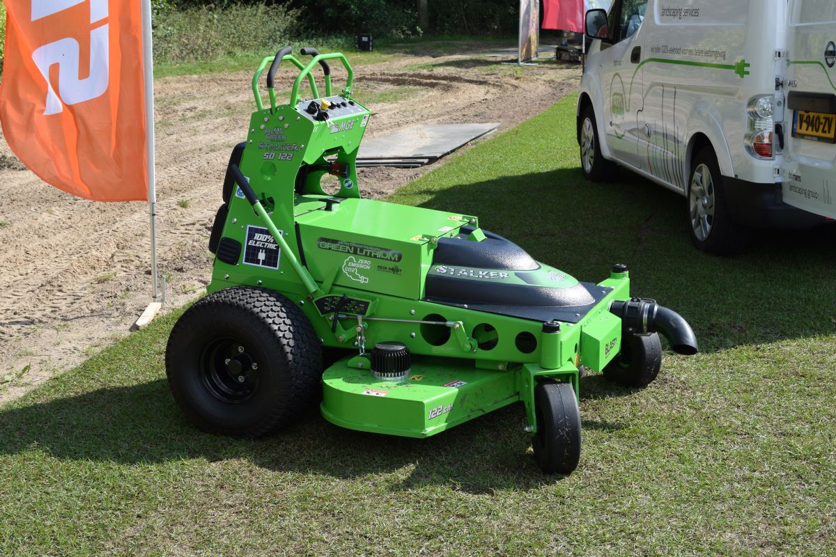 Een van de meest gebruikte woorden tijdens de beurs in Biddinghuizen was ongetwijfeld accu. De elektrificatie van de groensector is een ontwikkeling die niet meer te stoppen is. Dit was duidelijk te zien bij veel beursaanbieders én uiteraard in het zero-emissie paviljoen. Daar hebben wij ook het nieuwste elektrische voertuig van Frisian Motors gespot. De Leffert-40 is een voertuig dat zich officieel nog in de testfase bevindt. De eerste gebruikers mogen het gebruik monitoren, en het voertuig zo genezen van eventuele kinderziektes. De Leffert-40 is, zoals alle voertuigen van Frisian, geschikt voor de openbare weg. De topsnelheid is 45 km per uur en het bereik van de accu is 50 tot 60 kilometer. De Leffert FM-40 moet het gat gaan opvullen tussen de normale golfkar en de Leffert FM-50.