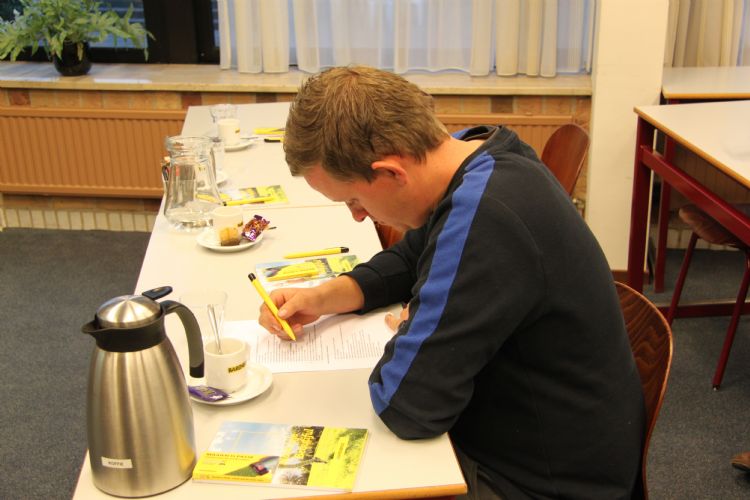 Een onderdeel van deze sessie was het evalueren van de persoonlijkheidstesten die de hoveniers thuis hebben ingevuld. Uit de test van Adne Veeneman blijkt dat hij een licht extraverte persoonlijkheid heeft. Hij is rationeel ingesteld, wat betekent dat hij beslissingen maakt door de opties te analyseren en minder door vanuit zijn gevoel te handelen. Daar herkent hij zich deels in. 'Op financieel vlak probeer ik altijd rationeel na te denken, maar in mijn hovenierswerk handel ik vooral vanuit mijn gevoel.' Uit de test blijkt verder dat Veeneman meer waarde hecht aan tastbare informatie dan aan intuïtie en dat hij veroordelend naar de wereld kijkt in plaats van te observeren.