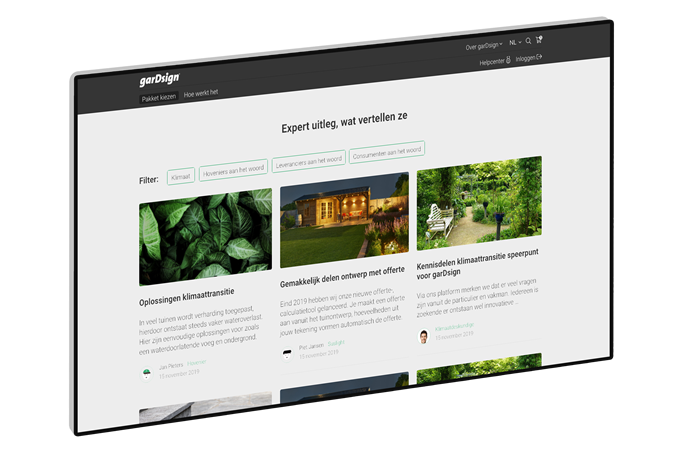Trends en productontwikkelingen Op het nieuwe kennisplatform van Gardsign wordt ook aandacht besteedt aan het ontwerpen van (duurzame) tuinen. "Al onze eigen kennis en ervaring bundelen we met vakkennis van andere tuinexperts. Ook tonen we op het platform de nieuwste trends en productontwikkelingen. En er worden struikelblokken besproken, zoals we momenteel bijvoorbeeld zien met de PFAS-problematiek of de noodzaak tot het vergroenen van de stedelijke omgeving.'