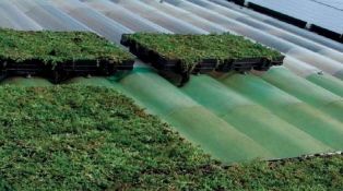 Eternit lanceert een oplossing voor een hellend 'groen' dak met golfplaten. De golfplaat fungeert daarbij als drager voor een hellend groen dak.