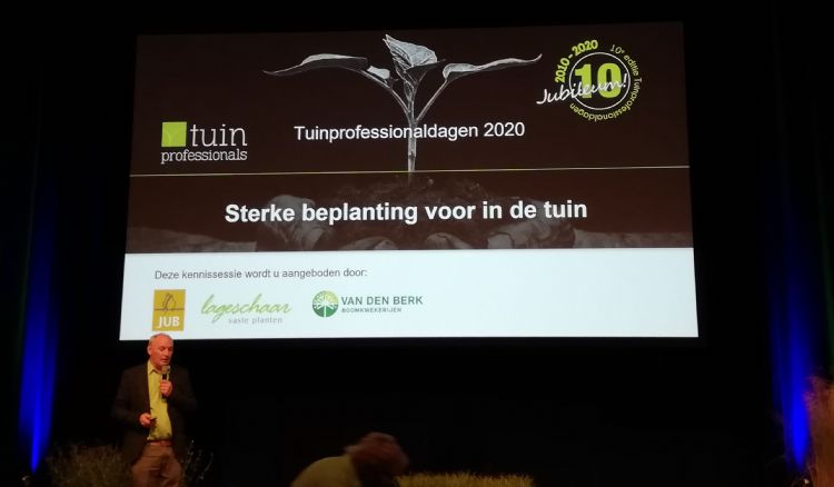 Om te zorgen dat de voorspellingen van de hoveniers uitkomen, leidden de partners van Tuinprofessionals verschillende kennissessies. Deze innoverende bedrijven zullen de veranderingen de komende jaren faciliteren. Om te beginnen was er de gezamenlijke presentatie door Laurens Lageschaar (Lageschaar vaste planten), Brenda Swinkels (Van den Berk Boomkwekerijen) en Carien van Boxtel (JUB Holland). Allen presenteerden ze sterke beplanting voor in de tuin, passend bij het 'nieuwe klimaat': warmer en droger met vaker zware hoosbuien. In het kader een drietal opties voor vaste beplanting, bomen en bloembollen.