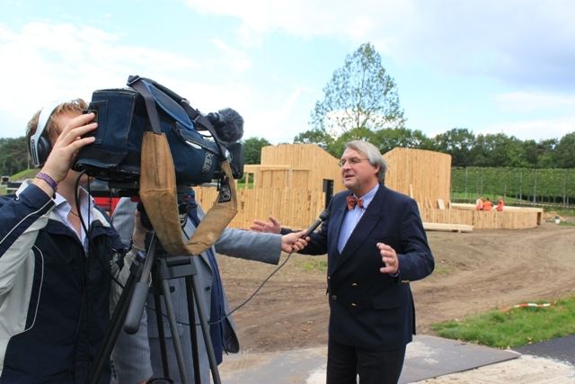 Floriade-directeur Paul Beck wordt geinterviewd voor het Boomkwekerijpaviljoen.