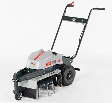 Cramer WKB480-onkruidborstelmachine. Vermogen 3,3 kW, gewicht 57 kg, werkbreedte 48 cm, verstelbare schuinstand, opklapbaar spatscherm