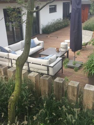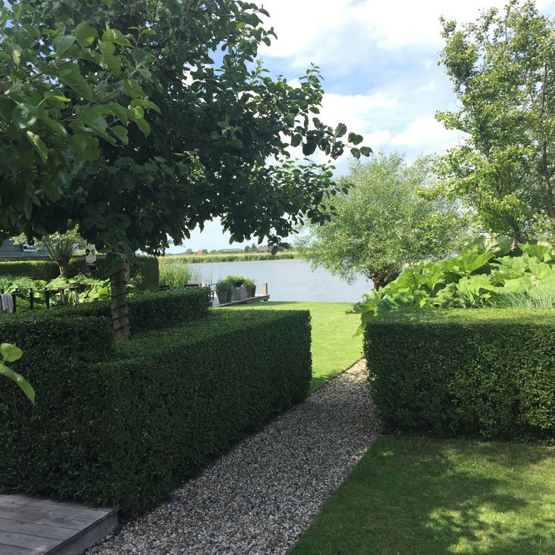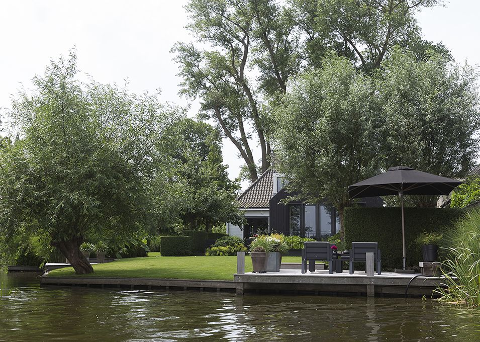 In het hogere segment is men vaak op zoek naar exclusiviteit. Hoe vind je dat, telkens opnieuw? 'Het begint met een gesprek met de klant, zoals de meeste ontwerpers eigenlijk werken. De klant geeft aan wat die graag in de tuin gerealiseerd wil hebben, zoals een terras, zwembad of een veranda met haard. Dat zijn redelijk vaste onderdelen die je in een tuin kunt inpassen. Het interieur en de smaak van de klant spelen natuurlijk ook een rol. Daarnaast heb je als ontwerper vaak veel vrijheid in de verdere indeling van de tuin.' Alhoewel 'buiten' steeds vaker een soort verlenging is van 'binnen', kijkt Van den Bos ook naar de buitenomgeving voor zijn ontwerp. 'De omgeving speelt een grote rol in wat ik met de tuin ga doen, in samenhang met wat de klant graag wil. Als het bijvoorbeeld gaat om een stedelijke situatie met veel omgevingsbebouwing, kan het zijn dat je die bebouwing meer uit het zicht wilt zetten voor meer privacy. Het kan ook zijn dat je op die plaats juist een zichtlijn wilt creëren naar een kerktoren of een mooi gebouw. Als je in een landelijke situatie zit en je hebt in de polder uitzicht over sloten en weilanden, dan wil je de tuin misschien niet omhagen voor privacy, maar het landschap juist in het tuinontwerp betrekken.'