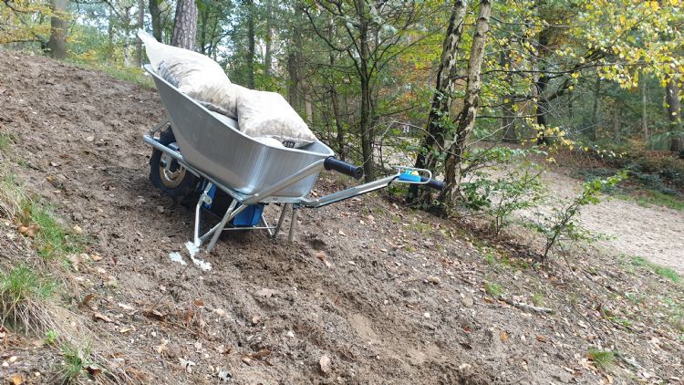 Net als de gewone kruiwagen heeft de elektrisch aangedreven kruiwagen een compact formaat en is hij uitermate wendbaar. Een elektrische kruiwagen heeft als voordeel dat veel werk overgenomen wordt door de hubmotor, waardoor je uiteindelijk meer werk kunt verzetten in minder tijd en met minder fysieke belasting. Een elektrisch aangedreven kruiwagen trekt zichzelf uit de zachte grond en kan blijven rijden, terwijl je een niet-aangedreven kruiwagen deels de grond in duwt door de kracht die je zet. Vaak is de oplossing dan de kruiwagen trekken om toch vooruit te komen. Een elektrische kruiwagen kan dus rijden op plekken waar gewone kruiwagens niet kunnen komen. 'Op dit moment zien wij veel animo voor de elektrische kruiwagen bij paardenbedrijven en hoveniers', vertelt Bonebakker. 'Natuurlijk zijn er ook particulieren, bouwondernemers en stratenmakers die gebruikmaken van de elektrische kruiwagen. Dat zijn dan vaak zzp'ers of bedrijven met weinig personeel. De kruiwagen is dus elektrisch gereedschap geworden; best wel laat, want elektrische boormachines, heggenscharen enzovoort kennen en gebruiken we al jaren.' Er zijn verschillende modellen op de markt. De meeste lijken op de kruiwagen zoals we die allemaal kennen, maar er zijn ook kruiwagens met standaard drie wielen en een kiepende bak. Over het algemeen hebben de meeste kruiwagens voldoende kracht. De kracht van een kruiwagen is moeilijk aan het wattage af te lezen. Over het algemeen is Bonebakker ervan overtuigd dat elektrische kruiwagens voldoende kracht hebben om een bak grond de container in te rijden. Belangrijk voor een fijn werkende kruiwagen zijn de loopsnelheid onder alle omstandigheden en de bediening. De loopsnelheid moet ook met belading goed zijn; anders ga je de kruiwagen vanzelf duwen. Ook de bediening is van belang. Bij het rijden met een zware vracht is de duim de enige vrije vinger die gebruikt kan worden om de kruiwagen te bedienen. Omdat de accu vaak tot de duurste onderdelen behoort, is een wisselbare accu een goede oplossing. In een manege, waar een kruiwagen maar één of twee uur per dag gebruikt wordt, zit de eigenaar niet te wachten op een heel dure accu, zo'n type waarmee de stratenmaker een dag lang kan werken. Een verwisselbare accu biedt dan een oplossing.