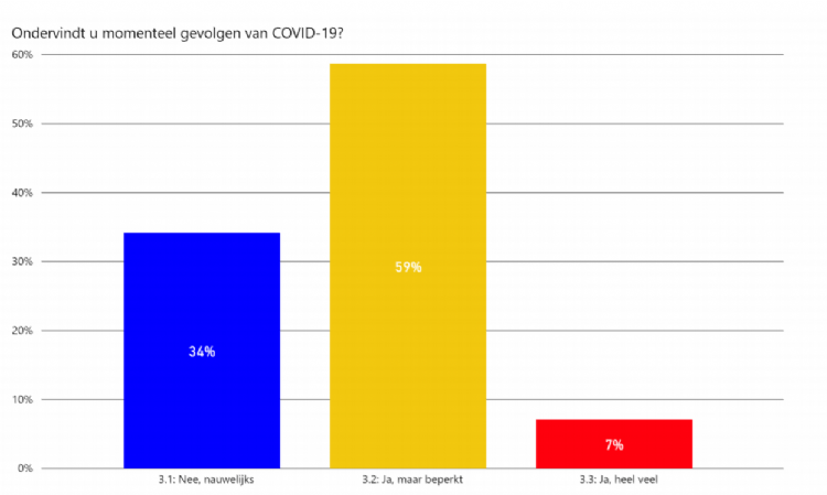Bijna 60% van de respondenten geeft aan beperkt gevolgen te ondervinden van corona