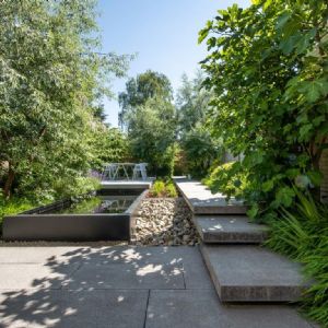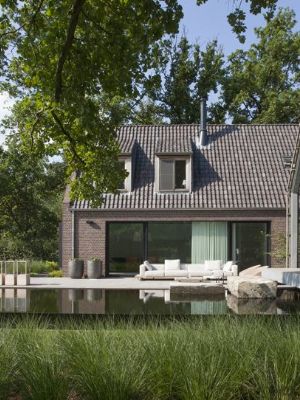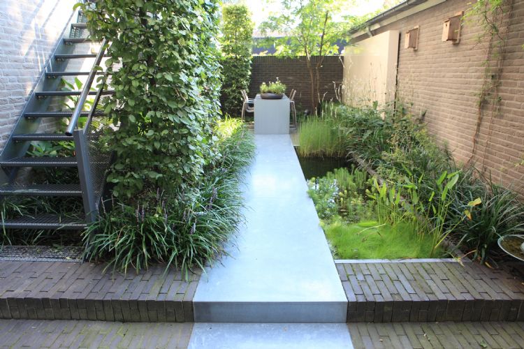 Puur'Onze bedrijfsnaam werd Puur Tuinarchitectuur en realisatie. We hebben besloten om ons te concentreren op het ontwerp en de aanleg van particuliere tuinen en om de lat hoog te leggen. We bedienen klanten die aangeven dat ze een bovengemiddelde tuin willen. Mooi qua beleving, met mooie materialen, een bijzonder ontwerp én water.'Ze startten met één Nederlandse vestiging - nu in Liempde. Nickmans verhuisde weer naar België, op anderhalf uur rijafstand. Inmiddels hebben ze twee goedlopende bedrijven - in Liempde en Alken (België) - en is de omzet verdubbeld. Hagenbeeks ogen sprankelen als hij over 'zijn' tuinen praat. 'Veel mensen vinden dat de tuin moet passen bij de opdrachtgever. Ik vind dat de tuin moet passen bij de woning', geeft hij aan als uitgangspunt. Hij kijkt naar de stijl van het huis, maar ook naar de omgevingsfactoren. Hij luistert naar de wensen en gaat vervolgens creatief aan de slag. 'We onderscheiden ons in het ontwerpproces', durft hij met een gerust hart te zeggen. Hij prikkelt de klanten door ze twee ontwerpen voor te leggen. 'In plan 1 zijn de wensen van de klant vertaald. In plan 2 verwerken we onze zienswijze. Mensen zitten vast in denkpatronen. We dwingen de klant als het ware om over andere mogelijkheden na te denken, waar ze zelf niet aan gedacht zouden hebben. Op basis van de feedback maken we een nieuw ontwerp, waar onderdelen van beide plannen in verwerkt zijn.'