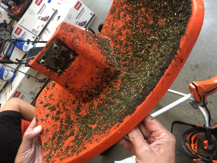 | | De bosmaaier kan uitgerust worden met een nylonkop, hier met Black Diamond. |