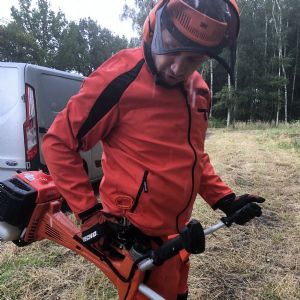 'De verschillende soorten maaiers en werktuigen zijn bedoeld voor verschillende werkzaamheden', legt Maes uit. 'Voor licht trimwerk zoals kanten trimmen en licht bosmaaiwerk gebruik je bosmaaiers tot zo'n 25 cc. Ga je naar half trimwerk en wat meer intensief bosmaaiwerk, dan pak je een bosmaaier van tussen de 25 en 40 cc. Voor het zwaardere werk gebruik je 40 tot ongeveer 55 cc. Men denkt soms: we kopen de zwaarste en daarmee kunnen we al het werk doen. Dat is niet zo. Wie lichtere klussen doet met een te zware bosmaaier, gaat met de machine op half vermogen werken. Als je dat doet, veroorzaak je eigenlijk extra slijtage van zowel de machine als je lichaam. Als je met de gaskraan halfopen werkt, werk je constant met de hoogste vibraties. Dat is slecht voor de onderdelen, zoals de koppelingen, die eerder verslijten. Maar ook voor je lijf. Je hebt eerder kans op het carpaal tunnelsyndroom en het wittevingersyndroom. Heggenscharen, bosmaaiers, ze hebben maar twee standen: geen gas of vol gas.' Maes adviseert ook om goed op te letten of je het juiste PBM hebt. 'Let goed op bij de keuze van de gehoorbescherming. Niet proppen in je oor én kappen. En kijk naar je machine. Een machine heeft twee geluidsnormen: voor het sound power level, het geluid dat wordt gegenereerd door de motor, en het sound pressure level, het geluidsdrukniveau op het oor van de gebruiker. Op basis van dat cijfer moet je je gehoorbescherming kiezen. Zorg dat je de geluidsdruk dempt tot 80 dB. Dan kun je acht uur veilig werken. Gehoorschade is onomkeerbaar, net zoals het wittevingersyndroom. Je hebt goede handschoenen nodig, het liefst met dempende werking voor de vibraties. Je handschoenen, broek en jas moeten je ook beschermen tegen berenklauw, ridderzuring en jakobskruiskruid. Die planten zijn giftig; je kunt er leverfalen aan overhouden. Dus trek je bosmaaierbroek aan als je niet weet wat je tussen het gras kunt aantreffen. Een rondvliegend stuk blik of steentje kan je verwonden. Een bosmaaier is een krachtige machine, zeker deze. Houd daar rekening mee.'