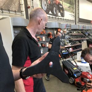 Teeuwen vult aan: 'Uit ervaring weten we dat Nederlanders wat eerder naar professionele machines grijpen en dat in België ook het semiprofessionele assortiment veel door professionals wordt gebruikt. Nederlanders hechten wat meer waarde aan ergonomie. De chassisbouw van deze machine, met een effectief antivibratiesysteem en een grotere brandstoftank, heeft in combinatie met een wat comfortabeler harnas ergonomische voordelen. Dat weegt voor veel Nederlandse klanten wat zwaarder dan de prijs, waar in België over het algemeen wat meer naar gekeken wordt. De adviesprijs van deze professionele bosmaaier met de hakselset is € 999,00 inclusief btw.' Alle onderdelen van de Echo-machines zijn gecertificeerd en gekeurd. 'Mocht er ooit iets gebeuren waardoor de verzekering erbij betrokken raakt, dan loop je op dat gebied geen risico', vertelt Maes. 'Weet je, Japanners zetten nooit iets in de markt wat niet goed is. Wij geven op deze bosmaaier dan ook twee jaar garantie bij professioneel gebruik en vijf jaar voor de particulier. Die kan daar eigenlijk de rest van zijn leven mee vooruit.' Teeuwen: 'Jan praat als medewerker van Yamabiko, maar wij hebben meerdere merken in ons assortiment en kunnen er iets objectiever over praten. Wat opvalt aan producten die uit Japan komen, is dat ze tot in de finesses zijn afgewerkt. Je voelt aan alles dat het goed is, zo veel kleine details waaraan je ziet dat er aandacht aan is besteed, dat het klopt en dat er een kwaliteitscontrole is uitgevoerd.'