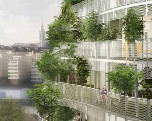 Tour Végétale de Nantes Architect: Edouard François - int. FRIBA Botanicus: Claude Figureau Opdrachtgever: Groupe Giboire Planning: Oplevering 2012 Oppervlakte: 7500 m² - appartementen (85 à 90 eenheden) 2000 m² - kantoor 350 m² - activiteit 91 parkeerplaatsen