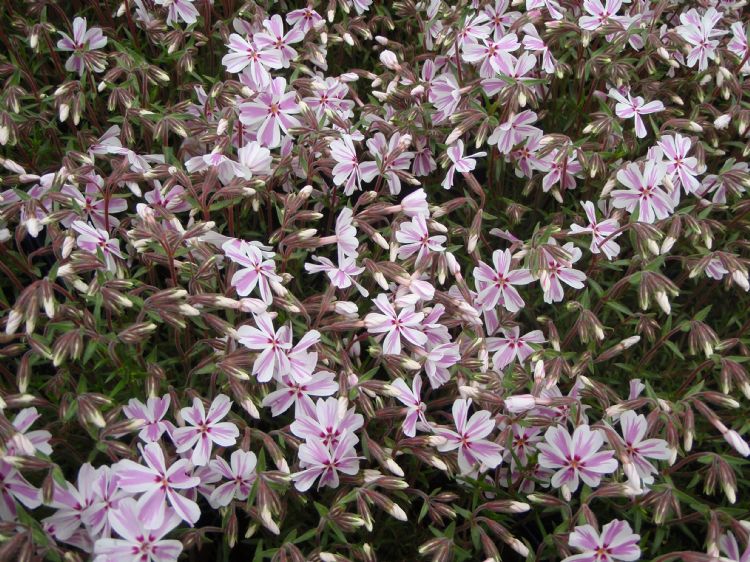 Phlox subulataStandplaats: zonWinterhardheid: goed Hoogte: 10 - 15 cm Bloeitijd: april, mei, juni Bodem: goede tuingrond, niet te nat Omschrijving: Phlox subulata, ook wel kruipende vlambloem of kruipphlox genoemd, vormt vanaf april/mei een mooi dicht bloemendek. Er zijn verschillende variëteiten met lichtroze, lilaroze of helder roze-rode bloemen. Ook heel mooi in een rotstuin. De bladeren zijn langwerpig. De bloemen trekken veel vlinders aan. Pachyphragma macrophyllumStandplaats: halfschaduw, schaduwWinterhardheid: goed Hoogte: 20 - 40 cm Bloeitijd: maart, april, mei Bodem: elke goede tuingrond, vochthoudend Omschrijving: Dit is eens iets anders dan Pachysandra terminalis. Deze schaduwplant kan op dezelfde grondsoort groeien, maar heeft spierwitte bloemen die lijken op witte pinksterbloemen in het vroege voorjaar. Deze snelgroeiende kruisbloemige komt uit de Kaukasus. Het grote ronde groene blad ontspruit al vroeg in het voorjaar en onderdrukt dan opkomend onkruid.