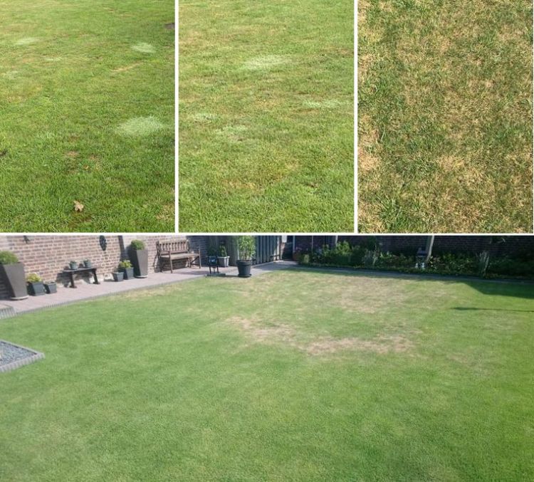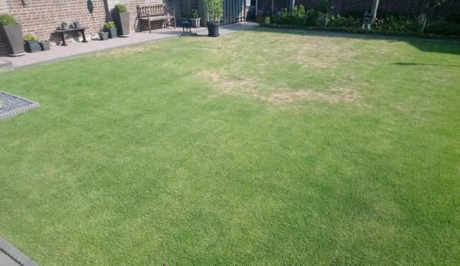 Dit is het derde achtereenvolgende jaar waarin we periodes hadden met weer dat zeer nadelig was voor het gazon. De hitte en het inbranden door de zon en de droogte van een paar weken geleden hebben toch weer veel schade achtergelaten.