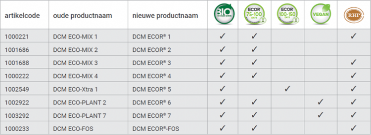 DCM wijzigt de productnamen van de organische meststoffen ECO-MIX naar ECOR: Efficient Controlled Organic Release.