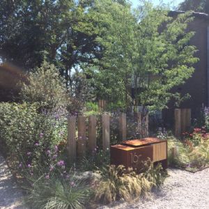 Deze landelijke tuin is aangelegd met klimaat adaptieve beplanting. 'Dit zorgt in het voorjaar voor een prachtig vol boeket aan bloemen wat goed is voor de beestjes en de bijtjes, daarnaast is deze tuin ook nog erg onderhoudsvriendelijk', aldus Hans van de Kam.