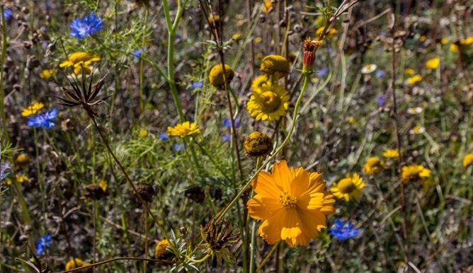 Veldbloemen in de tuin