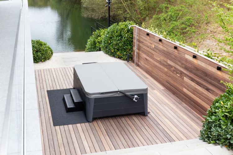 Voor Heart for Gardens was het een uitdagend project, omdat de woning heel dicht op het water staat. Het gedeelte waar de jacuzzi staat, kan onder water komen te staan. De vlonder moest daarom gemaakt worden van materiaal dat goed tegen water kan. Padoek-hardhout bleek uitermate geschikt en de luxe uitstraling maakt het plaatje helemaal af.