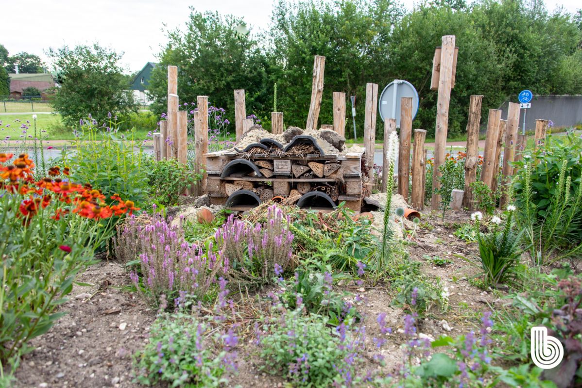 De rotonde is aangekleed met de welbekende hortensia 'Forever and ever' uit het nabijgelegen Elshout
