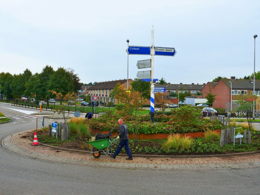 Hoveniersbedrijf de Langstraat is al jarenlang de trotse adoptieouder van de rotonde aan de Kastanjelaan te Drunen. Marcel Muskens van het bedrijf laat weten: 'Onlangs is deze weer gepimpt met duizenden vaste planten.' De keus voor adoptie werd toentertijd snel gemaakt. Muskens: 'De rotonde ligt dicht bij ons bedrijf, in een doorgaande weg richting de snelweg. Mede omdat collega-hoveniers deze marketingstrategie niet toepasten, gingen wij er wel op in.'De rotonde is aangekleed met de welbekende hortensia 'Forever and ever' uit het nabijgelegen Elshout. Verder zijn de hoge Cornus-struiken en meerstammige krentenbomen ware eyecatchers, in combinatie met de vele soorten vaste planten zoals Verbena, Persicaria, Sedum, Nepeta, Rudbeckia, Pennisetum, Liriope, Teucrium, Stipa, Aster en Geranium. De cortenstalen rand van 60 cm hoog en de acaciahouten palen die mooi in een bedje van Waldsteinia staan, maken het geheel af. Muskens: 'We halen er veel naamsbekendheid uit, door de vrolijkheid en de wisselende reclameborden op de vier doorgangen.'